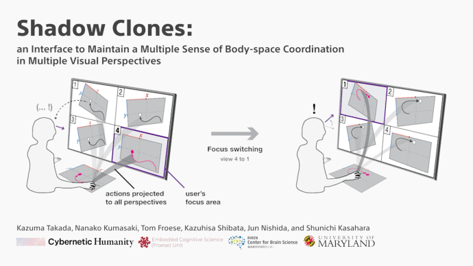 ShadowClones: an Interface to Maintain a Multiple Sense of Body-space Coordination in Multiple Visual Perspectives We propose ShadowClones, an interface that supports interactions in which a single user can interact with multiple bodies in multiple spaces. Recent teleoperation technologies have allowed a user controlling multiple objects simultaneously, but at the same time, it also exhibited…